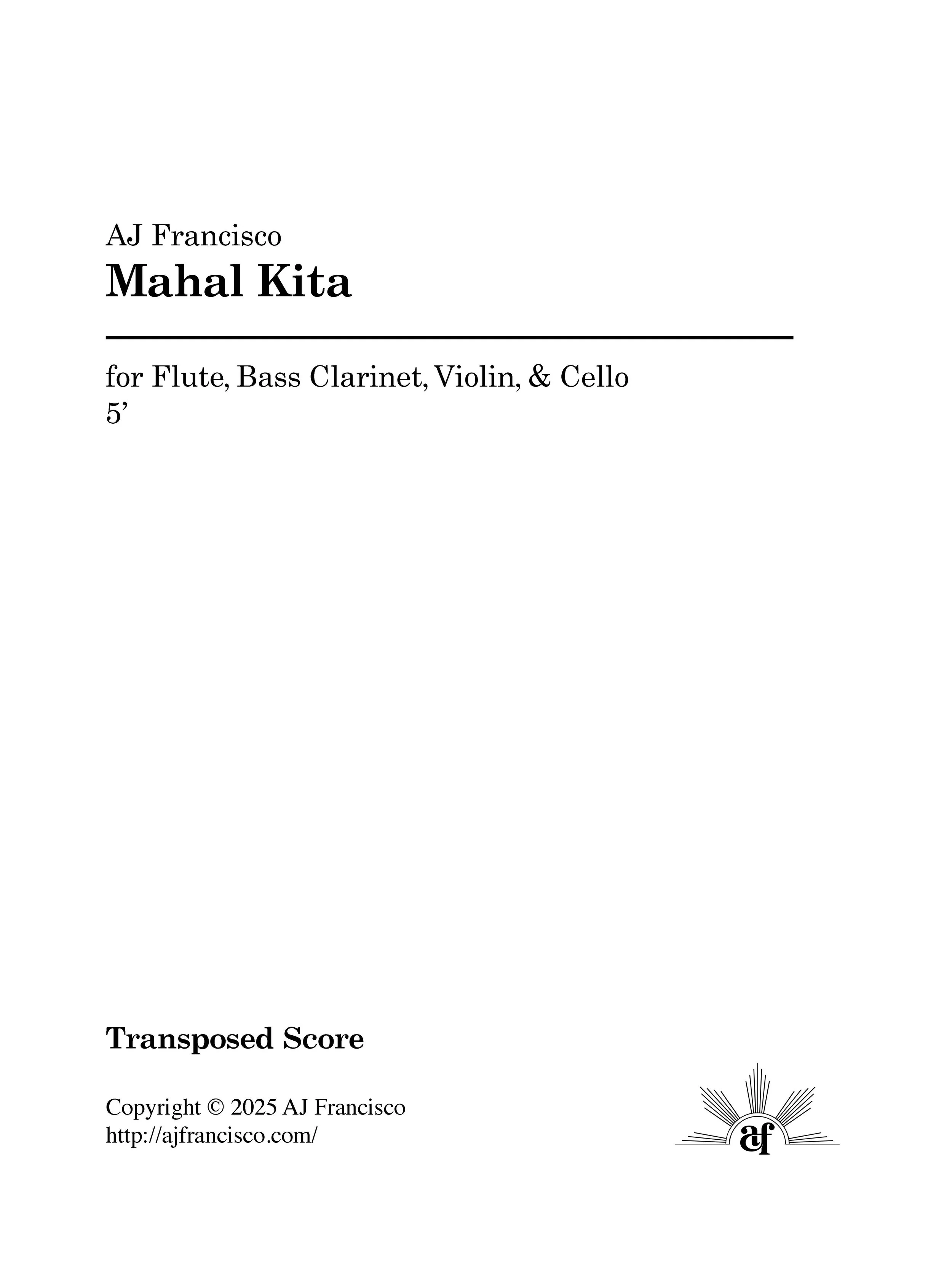 Mahal Kita | Flute, Bass Clarinet, Violin, & Cello